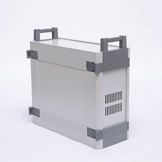 H型機(jī)箱由上蓋板,下蓋板,前面板,后面板,側(cè)板等配件組裝而成,可做為機(jī)架式或臺式機(jī)箱,把手有多款可供選擇,分別有:金屬把手,立柱把手,金屬折疊把手,伸縮型塑料把手,大提手等。標(biāo)配型機(jī)箱表面經(jīng)噴塑處理,噴塑的塑粉顏色可以按照客戶要求選定,白、灰色為行業(yè)首選的經(jīng)典顏色。另前、后面板可以做氧化等工藝處理。此款機(jī)箱高、寬、深可任意定制。標(biāo)配機(jī)箱的兩側(cè)側(cè)板有兩條散熱孔,散熱孔可以按照客戶要求訂制。還可以提供開孔,壓鉚,銑深等來圖加工服務(wù)。內(nèi)部的安裝底板為安裝元器件固定所用,為選配鋁板,可以提供開孔處理。此款機(jī)箱為本公司加工時效最短出貨的款式,具體請來電咨詢。