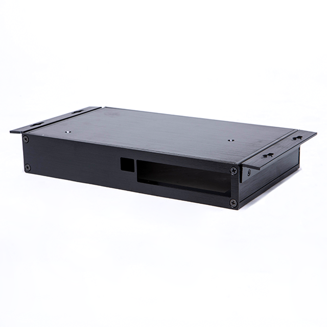 U型機(jī)箱由上蓋板,下蓋板,前面板,后面板,側(cè)板配件組裝而成,可做為機(jī)架式或臺(tái)式機(jī)箱,機(jī)架式機(jī)箱兩側(cè)帶有耳朵直接固定的機(jī)器內(nèi),臺(tái)式款式可以去掉兩側(cè)耳朵。此款機(jī)箱前后面板與側(cè)板是由固定尺寸的鋁型材經(jīng)機(jī)床加工后組裝而成,高度固定為1U、2U、3U,寬一般為19#的居多,深可以任意定制。機(jī)箱表面處理分為噴塑、氧化等。標(biāo)配機(jī)箱不帶散熱孔,散熱孔可以按照客戶要求訂制。還可以提供開(kāi)孔,壓鉚,銑深等來(lái)圖加工服務(wù),具體請(qǐng)來(lái)電咨詢。