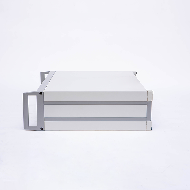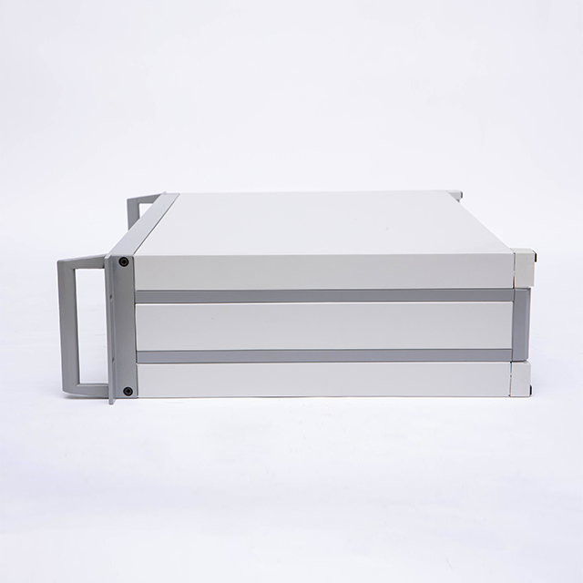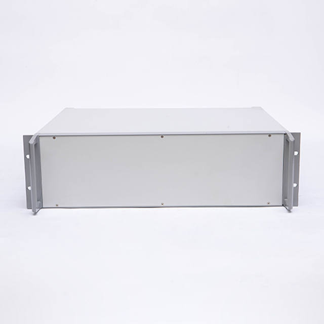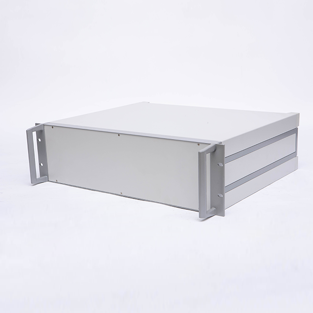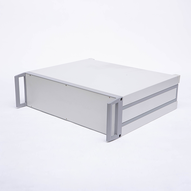 B型機箱由上蓋板,下蓋板,前面板,后面板,側板,前后梁,帶耳把手等配件組裝而成,為機架式機箱,把手兩側帶有耳朵直接固定的機器內。標配型機箱表面經噴塑處理,噴塑的塑粉顏色可以按照客戶要求選定,白、灰色為行業首選的經典顏色。另前、后面板可以做氧化等工藝處理。此款機箱側板是由固定尺寸的鋁型材機床加工后組裝而成,為考慮美觀與實用性,最高高度建議在5U以下(具體高度分為2U、3U、4U)。若需要5U或超過5U的客戶,可以選購DB型款式的機箱(注:DB型機箱也是此系列中的其中一款)。標配機箱的下蓋板上開有兩條散熱孔,散熱孔可以按照客戶要求訂制。還可以提供開孔,壓鉚,銑深等來圖加工服務。內部的安裝底板為安裝元器件固定所用,為選配鋁板,可以提供開孔處理。另外,此款機箱還可以做成插箱,具體請來電咨詢。