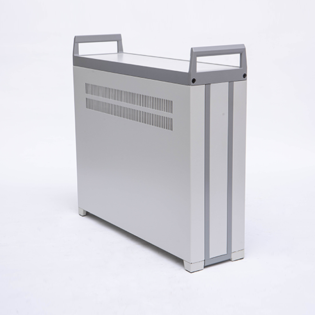 B型機箱由上蓋板,下蓋板,前面板,后面板,側板,前后梁,帶耳把手等配件組裝而成,為機架式機箱,把手兩側帶有耳朵直接固定的機器內。標配型機箱表面經噴塑處理,噴塑的塑粉顏色可以按照客戶要求選定,白、灰色為行業首選的經典顏色。另前、后面板可以做氧化等工藝處理。