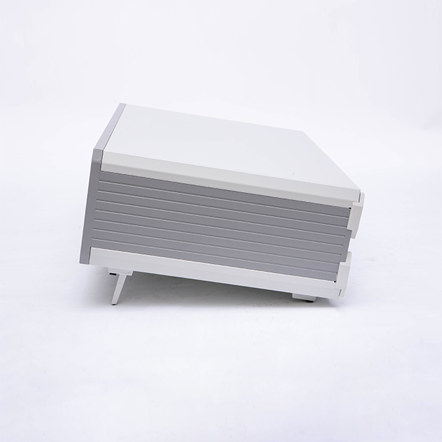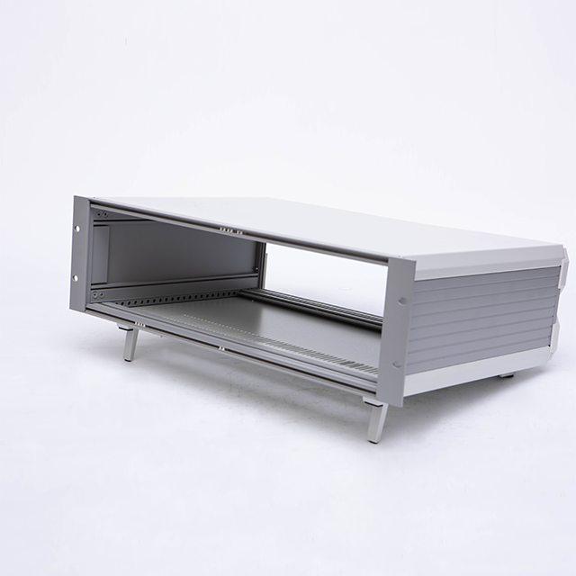 D型機箱由上蓋板,下蓋板,前面板,后面板,側(cè)板,前后梁等配件組裝而成,為臺式機箱。此款機箱標配款不帶兩側(cè)把手,可以定制加購把手,把手有金屬把手、大提手、金屬把手、伸縮型皮把手等選配。標配型機箱表面經(jīng)噴塑處理,噴塑的塑粉顏色可以按照客戶要求選定,白、灰色為行業(yè)首選的經(jīng)典顏色。另前、后面板可以做氧化等工藝處理。此款機箱側(cè)板是由固定尺寸的鋁型材機床加工后組裝而成,可以做成大型機箱,高度以U為單位固定,寬與深可以任意定制。標配機箱的下蓋板上開有兩條散熱孔與大撐腳,散熱孔可以按照客戶要求訂制。還可以提供開孔,壓鉚,銑深等來圖加工服務(wù)。內(nèi)部的安裝底板為安裝元器件固定所用,為選配鋁板,可以提供開孔處理。此款機箱還可以做成插箱,具體請來電咨詢。
