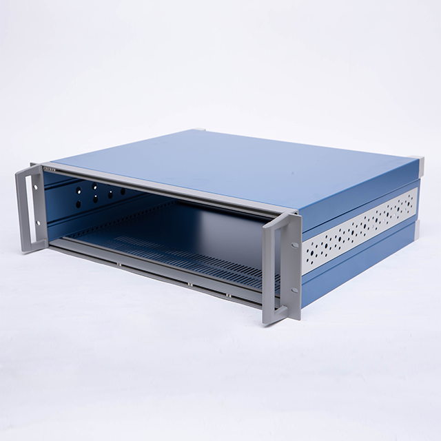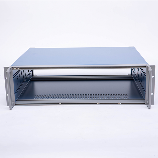 A型機箱由上蓋板,下蓋板,前面板,后面板,側板,底腳,把手,前后梁等配件組裝而成,為臺式機箱。標配型機箱表面經噴塑處理,噴塑的塑粉顏色可以按照客戶要求選定,白、灰色為行業首選的經典顏色。另前、后面板可以做氧化等工藝處理。此款機箱側板是由固定尺寸的鋁型材機床加工后組裝而成,為考慮美觀與實用性,最高高度建議在5U以下(具體高度分為2U、3U、4U)。若需要5U或超過5U的客戶,可以選購D型款式的機箱(注:D型機箱也是此系列中的其中一款)。標配機箱的下蓋板上開有兩條散熱孔與大撐腳,散熱孔可以按照客戶要求訂制。還可以提供開孔,壓鉚,銑深等來圖加工服務。內部的安裝底板為安裝元器件固定所用,為選配鋁板,可以提供開孔處理。另外,此款機箱還可以做成插箱,具體請來電咨詢。款機箱還可以做成插箱,具體請來電咨詢。