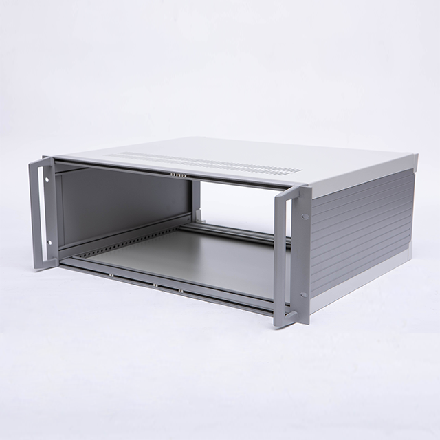 DB型機箱由上蓋板,下蓋板,前面板,后面板,側板,前后梁等配件組裝而成,為機架式機箱,把手兩側帶有耳朵直接固定的機器內。此款機箱標配款標配型機箱表面經噴塑處理,噴塑的塑粉顏色可以按照客戶要求選定,白、灰色為行業首選的經典顏色。另前、后面板可以做氧化等工藝處理。此款機箱側板是由固定尺寸的鋁型材機床加工后組裝而成,可以做成大型機箱,高度以U為單位固定,寬與深可以任意定制。標配機箱的下蓋板上開有兩條散熱孔,散熱孔可以按照客戶要求訂制。還可以提供開孔,壓鉚,銑深等來圖加工服務。內部的安裝底板為安裝元器件固定所用,為選配鋁板,可以提供開孔處理。此款機箱還可以做成插箱,具體請來電咨詢。